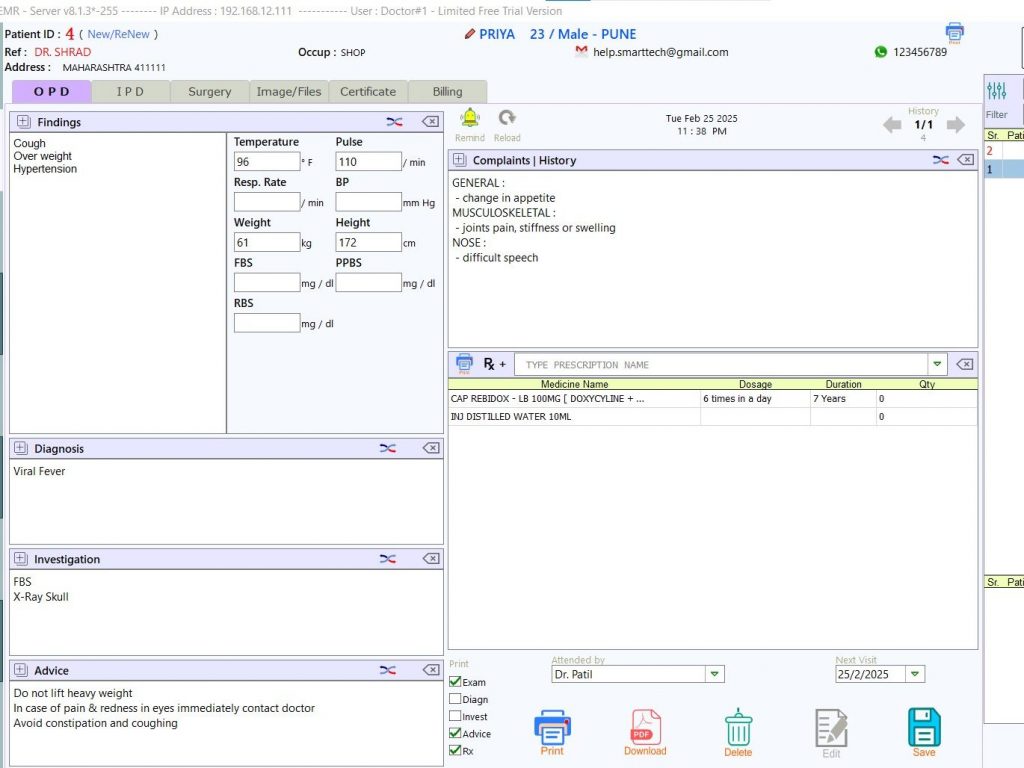 Save your time in OPD with Intuitive User Interface. No downtime as designed to work offline